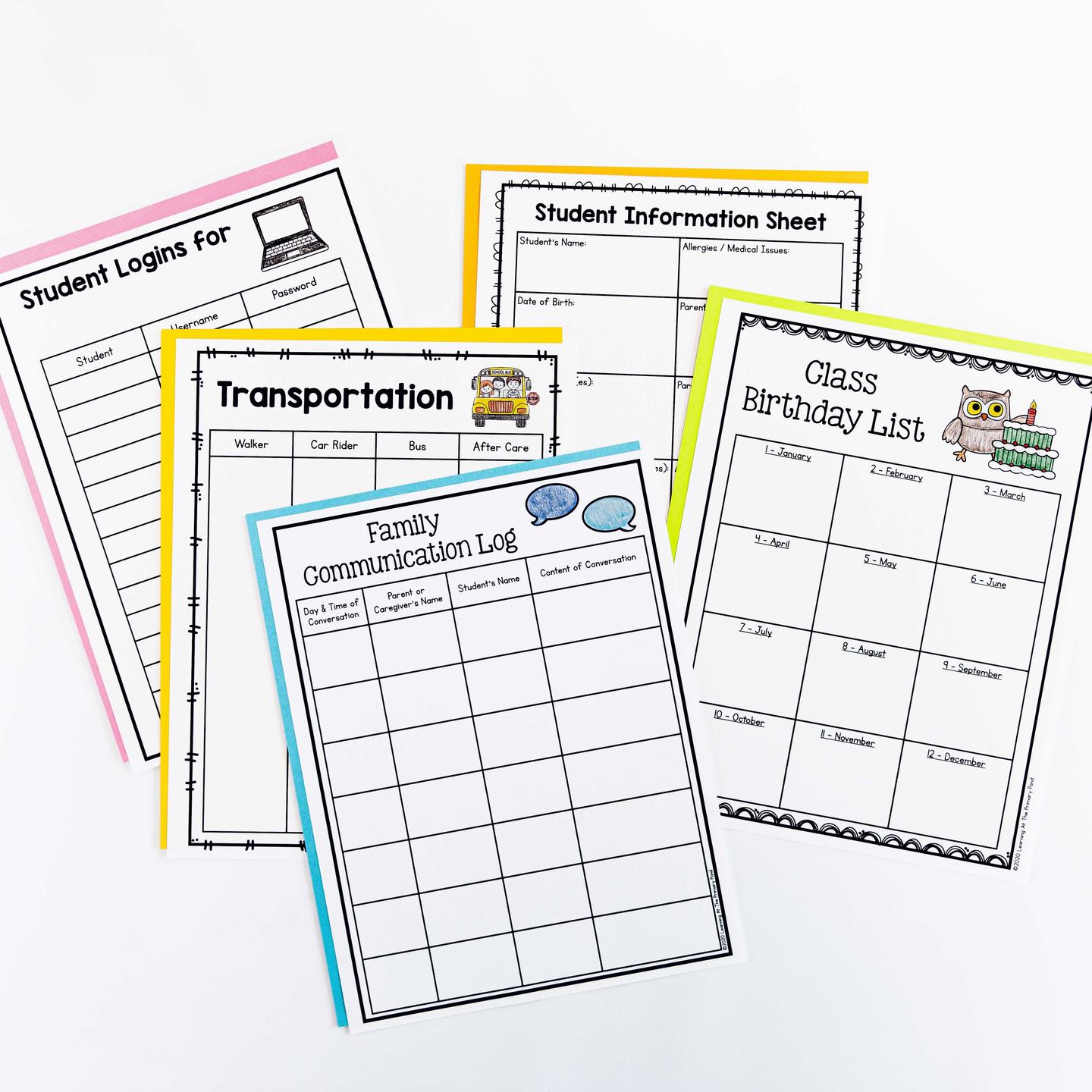 - Classroom newsletter templates, parent communication logs, login information sheets, and more