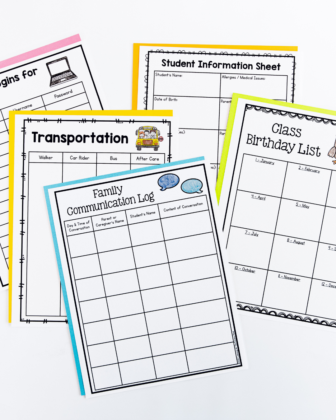 - Classroom newsletter templates, parent communication logs, login information sheets, and more